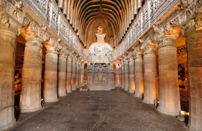 阿旃陀石窟由30座佛教寺廟組成,是在印度西部阿揚(yáng)塔村附近的山體上開鑿而成,是在花崗巖馬蹄形懸崖上精心雕刻而成。這些寺廟被聯(lián)合國(guó)教科文組織列為世界文化遺產(chǎn),它們擁有美麗的古代雕塑、祈禱大廳、裝飾復(fù)雜的洞壁、神龕和一些世界上最迷人的壁畫型繪畫,是佛教宗教藝術(shù)建筑的最佳范例。