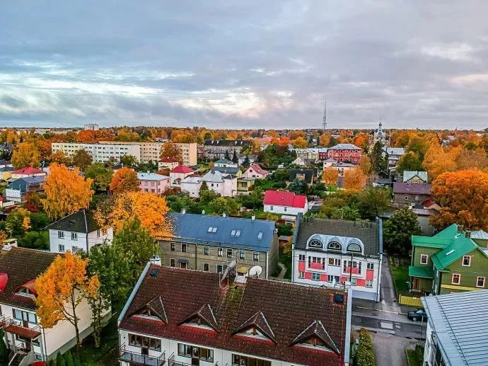 這天醒來,發(fā)現(xiàn)外面沒有下雨,我拿著無人機來到旁邊的停車飛了一圈。塔爾圖整座城市在秋的盛裝打扮下,非常美!