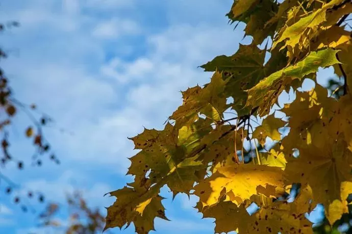 收拾行李離開的時候,發(fā)現(xiàn)太陽出來了,藍天出來了,白云出來了。。。。。。我沖到停車場旁邊拍下一組陽光明媚下的塔爾圖之秋。
