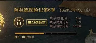 DNF阿拉德探險記第六季任務攻略這里和上一季不同,如果你是初級冒險家,那么你的每日任務是200經驗/個,一共有6個任務,合計1200經驗/天(與上期一致)如果你是高級冒險家,那么你的每日任務是400經驗/個,一共也是6個任務,合計2400經驗/天。(與上期一致)Ⅱ.每周任務每周任務由6個每周任務構成,但是只能完成3個每周任務,每個4500經驗,合計13500經驗/