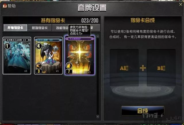 獲取建議:在保證卡組滿15張怪物卡 5張技能卡再合成,否則無法匹配游戲