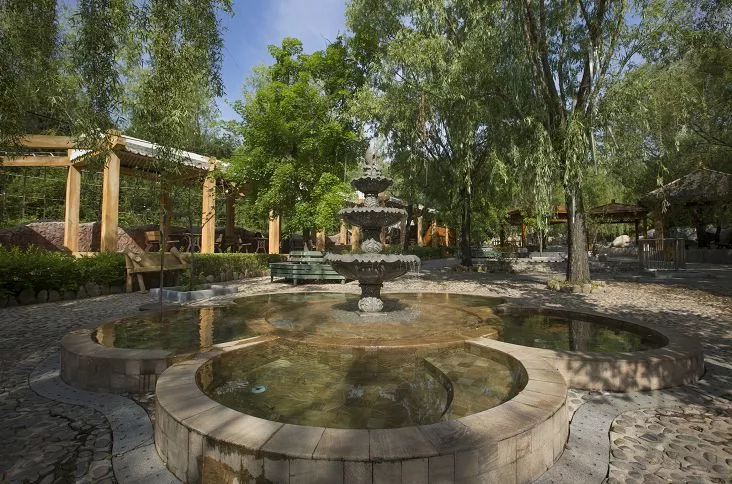 山莊按歐陸田園風(fēng)格設(shè)計,環(huán)境優(yōu)美、空氣清新、氣候宜人、綠植覆蓋率高達90%,院內(nèi)各種樹木多達200余種,形成一座天然大氧吧,行走在山莊院內(nèi),迎接你的是百年迎客松、千年古蓮潭、禮佛臺、戀虎亭、圣水湖、安波湖、千年龜石等景點,讓廣大游客仿佛置身于世外桃源,流連忘返。