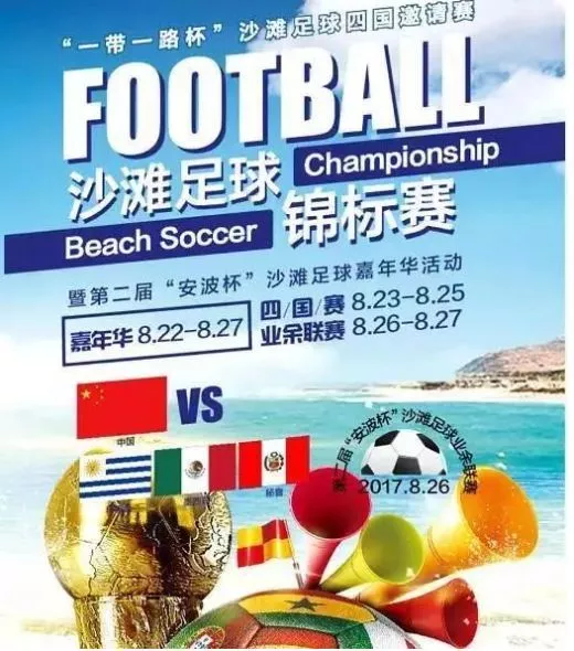 2017年由中國足協(xié)主辦的“一帶一路杯”沙灘足球國際邀請賽于安波鴻緣山莊成功舉行,中國、秘魯烏拉圭、墨西哥四個國家參加了比賽,國內(nèi)多家媒體進行了全程報道。