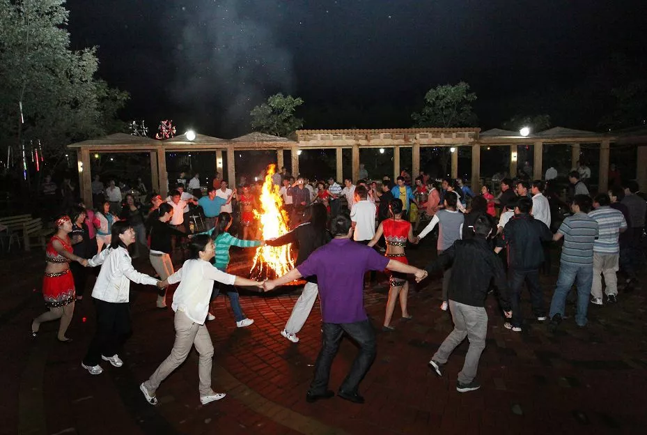燒烤店位于山莊圣水湖畔,主營烤全羊,原材料采用呼倫貝爾純正羊肉,可容納300人同時用餐,品種齊全,口味純正,因地制宜可舉辦篝火、焰火晚會,熱情似火的夏夜讓我們載歌載舞的嗨起來。