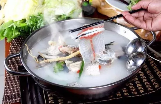 鴻緣山莊斑魚都是當天進貨,現(xiàn)點現(xiàn)殺的活斑魚。魚頭魚尾拿來清燉熬湯,湯底里除了清水和魚骨魚頭魚尾魚肉之外無任何添加,湯白味鮮。