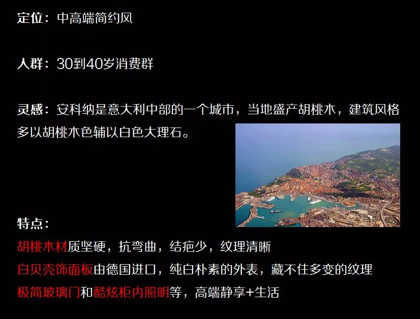 此次展會,頂固全屋定制的重點(diǎn)還擺在了一款新系列的展示:安科納全屋系列。一個(gè)這么范的系列,到底它的賣點(diǎn)在哪里呢,一圖就可以簡單概括: