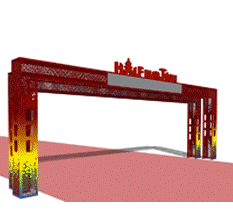 整體永久性起跑牌樓的設(shè)計(jì),融入了揚(yáng)州五亭橋、文昌閣等標(biāo)志性構(gòu)筑物,獨(dú)具揚(yáng)州特色。牌樓兩側(cè)設(shè)計(jì)鏤空的揚(yáng)州風(fēng)光圖片,再次把揚(yáng)州的血脈融入到了牌樓中。整體牌樓呈現(xiàn)中國(guó)喜慶的紅色,并在細(xì)部碎拼加入絢麗多彩的漸變顏色碎片。整體大氣時(shí)尚,細(xì)部精致巧妙。