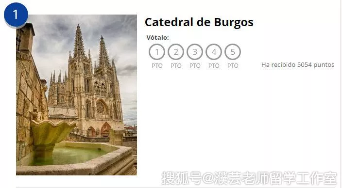 西班牙是世界上文化遺產(chǎn)眾多的國(guó)家之一。不但有著大量的紀(jì)念性建筑物和博物館,而且品質(zhì)上乘。因此,每年數(shù)以百萬計(jì)的游客對(duì)這個(gè)國(guó)家趨之若鶩就不足為奇了,人們?nèi)ツ抢锒燃佟⑾?、享受地中海美食,游玩于海邊或者去鄉(xiāng)下避暑。您又會(huì)選擇哪里去參觀呢?西班牙媒體20minutos公布了當(dāng)?shù)鼐W(wǎng)友評(píng)選出來的西班牙十大參觀圣地(紀(jì)念性建筑物)。【1】布爾戈斯大教堂票數(shù):50541CatedraldeBu