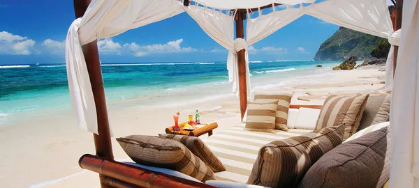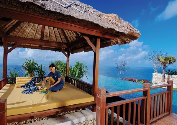 KarmaKandara度假村位于巴厘島南部烏甘沙(Ungasan)一處峭壁之上,崖下便是浩瀚的印度洋。度假村內(nèi)有橋梁、熱帶花園及蜿蜒的小路,連接54棟豪華的私人別墅。這里有絕佳的視野去觀賞無盡的天空與海洋;此外度假村別墅內(nèi)部也讓人贊嘆:每棟別墅由2—3座茅草屋頂或原木屋頂?shù)拈w間組成、無邊泳池、帶日曬甲板的花園、開放式起居室、廚房等一應(yīng)俱全。度假村距巴厘島國(guó)際機(jī)場(chǎng)車程20分鐘。推薦理