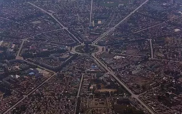 從高空俯瞰特克斯,整座城市呈現(xiàn)放射狀的4環(huán),64條街路路相通,猶如一張攤開(kāi)的大型八卦圖。