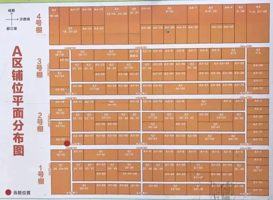 A區(qū)主要是有幾個大棚平行排列,不知道先從哪里開始逛的朋友,可以先看看導(dǎo)覽圖。吃郫妹也是第一次來,看了這張圖后,我……還是沒看出個啥。那就隨意逛吧~