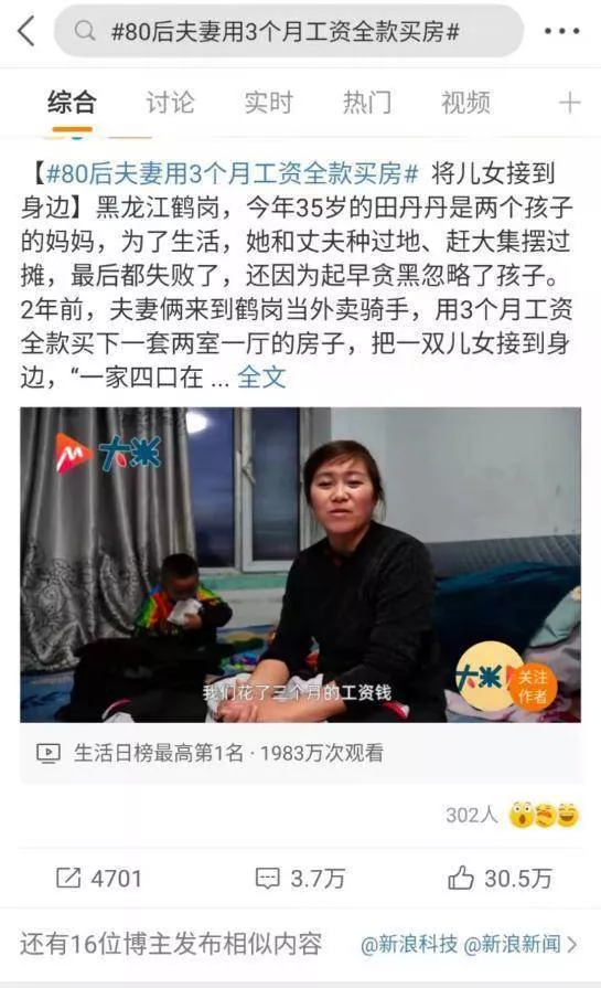 11月1日,微博話題“80后夫妻用3個月工資全款買房”沖上熱搜,閱讀量超過4億。