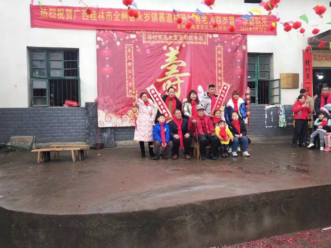 時(shí)隔不久的2021年2月28日,又一位蔣氏老人百歲壽誕了,這位老人是國(guó)家級(jí)傳統(tǒng)村落永歲鎮(zhèn)慕道村,名叫蔣時(shí)有,這天年滿101歲了。他是幕道村的第一位百歲老人。