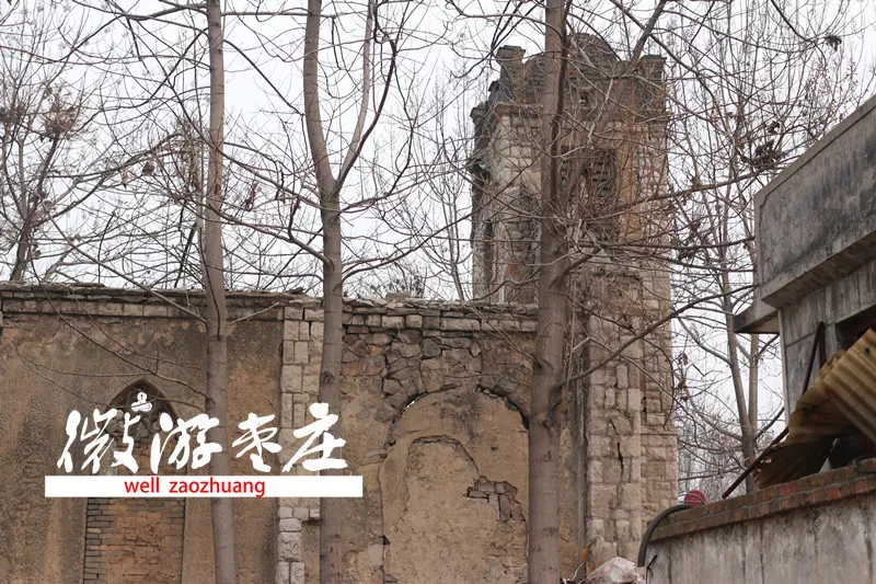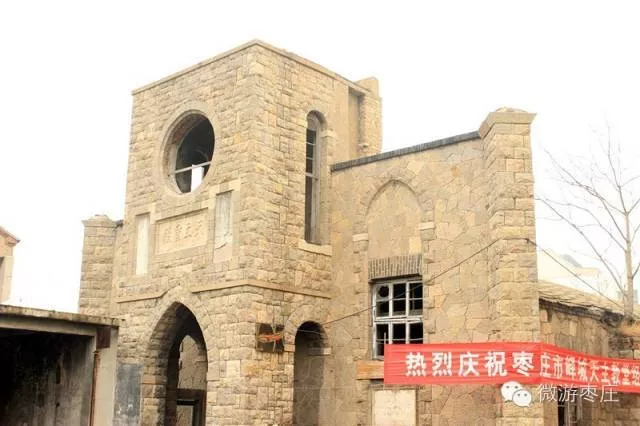 古城內(nèi)的基督教堂,1905年,美國基督教北長老會派葉克斯牧師來臺兒莊古城傳教,并在臺兒莊設(shè)立嶧縣基督教會臺兒莊嶧陽支會。1911年,葉克斯牧師以基督教會青年善會之基金,在臺兒莊古城西門里新建教堂一處,定名為臺兒莊基督培靈修道院,同時創(chuàng)辦教會學(xué)校,招收學(xué)生近百名。