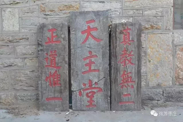 原來的教堂及修女樓等西洋建筑,可惜在“文革”期間被拆除了,現(xiàn)存當(dāng)年神職人員辦公室用的一排青石瓦房和教堂頂部的三通石碑,分別刻著“天主堂”、“真教無二”、“正道惟一”的大字。