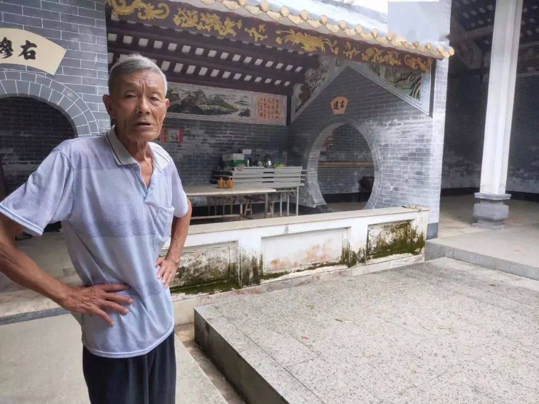 “當(dāng)年游擊隊(duì)的‘總部’就設(shè)在祠堂里,粵中縱隊(duì)三羅武裝力量的重要人物都在這里戰(zhàn)斗生活過?!痹跇渖桨肷窖慕献陟簦鹦孪蛴浾哒f起了那段紅色歷史。祠堂原來是三進(jìn)嶺南風(fēng)格磚瓦建筑,現(xiàn)在還保留有中庭和后堂。中庭有天井及左右兩廂。