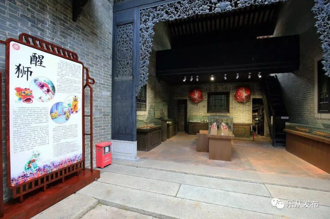 “這里是順德祠堂歷史陳列展,旁邊還有香云紗文化展、龍獅文化展等等?!?/p>