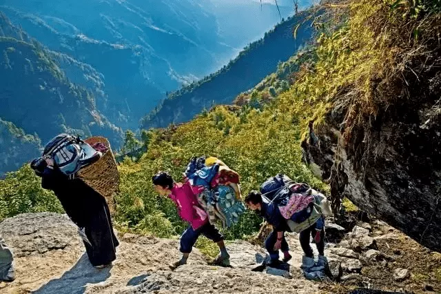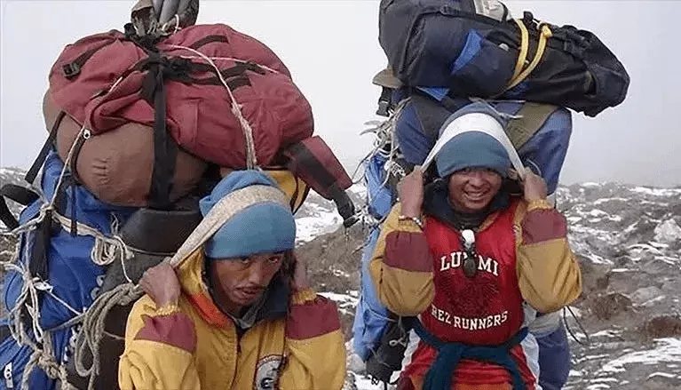 現(xiàn)在,只要人們提起“夏爾巴人”,腦海里出現(xiàn)的就是在雪山上負(fù)重前行的背夫。