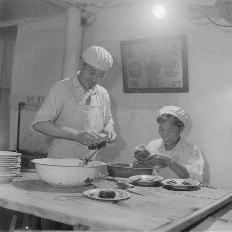 1962年,永定門外清真食堂的職工堅持食具消毒。 馮文岡攝