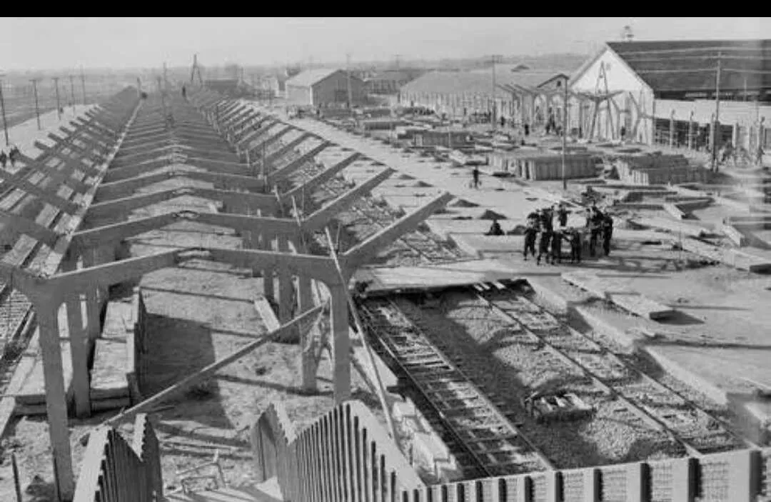 新建永定門火車站正在修建風雨棚。攝于1957年。