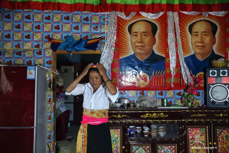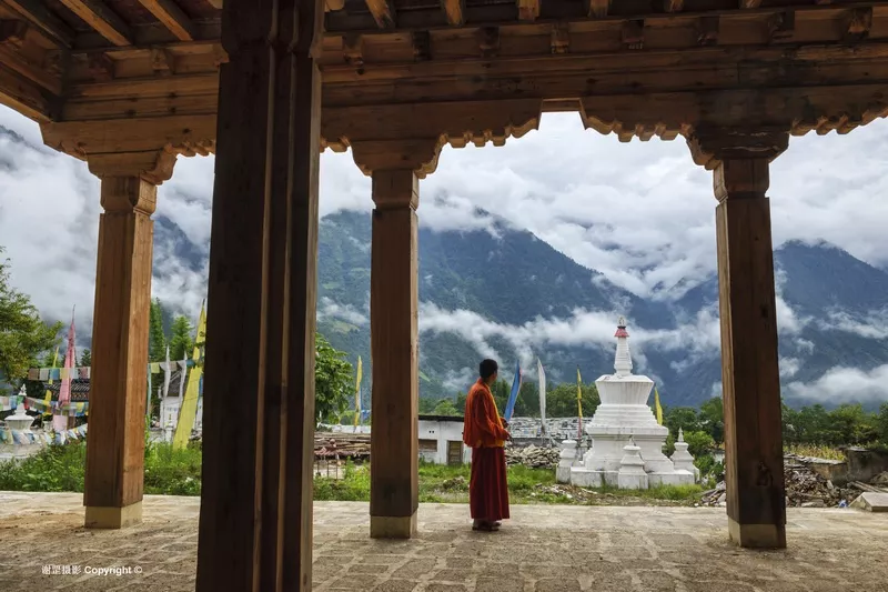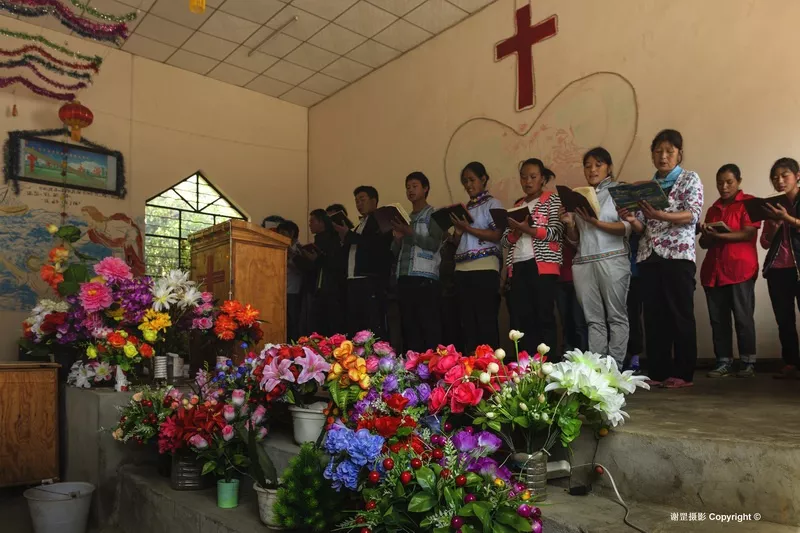 打拉村金囯洪全家照 除了不同民族間的和睦相處,這里信仰也非常自由,藏傳佛教、基督教、天主教和原始苯教共同存在。歷史上的丙中洛曾是藏傳佛教主導(dǎo)的地方,藏傳佛教與外來(lái)宗教的矛盾突出,先后發(fā)生過(guò)1865年秋拉桶村的呂項(xiàng)神父被佛教徒開槍打死的事件和1905年的“維西教難”,后來(lái)清政府的安撫和賠償為藏傳佛教與外來(lái)宗教的和平共處奠定了基礎(chǔ)。今天丙中洛盡管民族多樣,但在宗教信仰的選擇上完全自由。 位于丙中洛東風(fēng)村的普化寺,是整個(gè)怒江傈僳族自治州唯一的一座藏傳佛教寺院。住持江德喇嘛告訴我,普化寺在丙中洛有很高的威望,每天都有當(dāng)?shù)厝撕团苓叺貐^(qū)的信眾前來(lái)轉(zhuǎn)經(jīng)朝拜,其中很多人是漢族、怒族、傈僳族等其他民族。8月31日這天是丙中洛基督教和天主教的禮拜日,我在丙中村的基督教堂看到認(rèn)真合唱的信徒,在重丁村的天主教堂看到帶著孩童做禮拜的人們,這些畫面都讓我深刻感受到宗教信仰在當(dāng)?shù)卮?a href='/minsheng/' target=_blank>民生活中的根深蒂固。