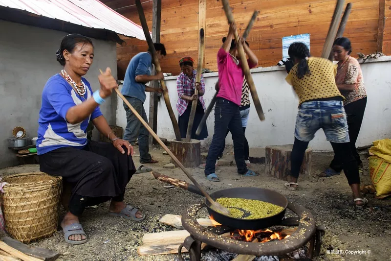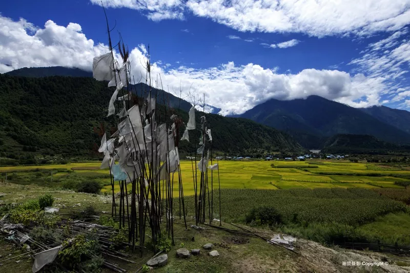 下察隅鄰近非法的“麥克馬洪線”,邊防管理嚴(yán)格,游人被限制在下察隅鎮(zhèn)附近活動(dòng)。這次走近察隅河南端是第一次,沒(méi)想到這邊的風(fēng)情是這么的美妙,青翠的大山中央是寬闊的察隅河谷,平坦的壩子和臺(tái)地上層層金黃的稻田,予人富饒美麗的第一印象。據(jù)史料記載,這一帶最早的居民叫“炯”,在“炯”人首領(lǐng)司那熱布顛的帶領(lǐng)下,開荒種地,打獵和種水稻。后來(lái)“炯”人與藏族發(fā)生爭(zhēng)戰(zhàn)失敗而逃到南方山區(qū)?!熬肌比诉w走后,由“雜”和“吉”兩個(gè)群落的藏族來(lái)在這里定居?!半s”是講土話的藏族,與其他藏族有語(yǔ)言上的很大差異,被稱作“雜隅娃”,意即“雜”群落居住地方的人。在這個(gè)區(qū)域里的沙馬、拉丁、松古等村就是至今保持著講土話的藏族。尋著這個(gè)線索,我們到了松古村、沙馬村去感受他們的生活。松古和沙馬兩個(gè)村約有200戶600余人,都座落在河谷臺(tái)地上,背靠茂密的青山,遠(yuǎn)眺察隅河谷,四周被大片的梯田水稻包圍著,一片田園農(nóng)耕景象。由于海拔只有1500米左右,又受孟加拉灣熱氣流影響大,氣候炎熱濕潤(rùn),老年婦人多穿民族傳統(tǒng)的短擺裙裝,而年輕人多著單薄時(shí)尚的常裝。語(yǔ)言上保持著自己特有的土話,其他沒(méi)有更多差別。新農(nóng)村建設(shè)后,吊腳樓與門前長(zhǎng)廊風(fēng)格的新民居寬敞明亮,水電防火等設(shè)施齊全,狹窄的老木樓雖還存在,但多為儲(chǔ)雜物或養(yǎng)畜之用,新老木樓之間對(duì)比強(qiáng)烈。院落前后和村道兩側(cè)生長(zhǎng)著柿子、梨桃、柑桔和花椒,地里也長(zhǎng)滿了蔬菜、花生、辣椒,顯出一方物產(chǎn)的豐富。這里的人或許傳承著先古“雜”人沒(méi)有階級(jí)劃分的傳統(tǒng),勤勞樸實(shí),團(tuán)結(jié)互助,熱情好客。中秋打扁谷是團(tuán)結(jié)互助最好的展現(xiàn),這里出產(chǎn)一種叫扁谷的香米,有降脂保健作用,一般摻入酥油茶中食用。每年中秋節(jié)都是采摘舂米的時(shí)候,而舂米不是個(gè)體行為而是集體勞動(dòng),各戶將從稻田里采摘來(lái)的扁谷統(tǒng)一拿到舂米房,一邊烤香一邊舂制。全村人像過(guò)節(jié)一樣全部匯聚在一起輪番上陣,只有歡笑沒(méi)有偷懶也沒(méi)有你多我少。最后各家拿著舂制好了的扁谷高高興興回家。這里的人們?cè)缫呀Y(jié)束貧困的日子,盛產(chǎn)谷物,優(yōu)良的多類種植條件,本己富足有余,每年還享受政府幾萬(wàn)元的各種農(nóng)村補(bǔ)貼,日子過(guò)得舒舒服服。這里的人們沒(méi)有信仰佛教的傳統(tǒng),除了農(nóng)忙的時(shí)候,基本上就是在喝米酒,看電視,唱歌跳舞中度過(guò)。松古村村長(zhǎng)四娜美朵樸實(shí)的語(yǔ)言說(shuō),我們的信仰就是毛主席和共產(chǎn)黨。