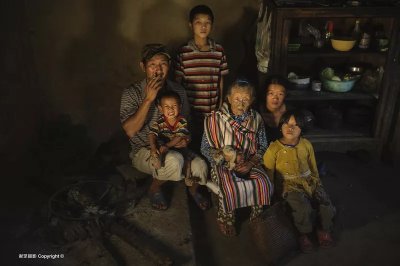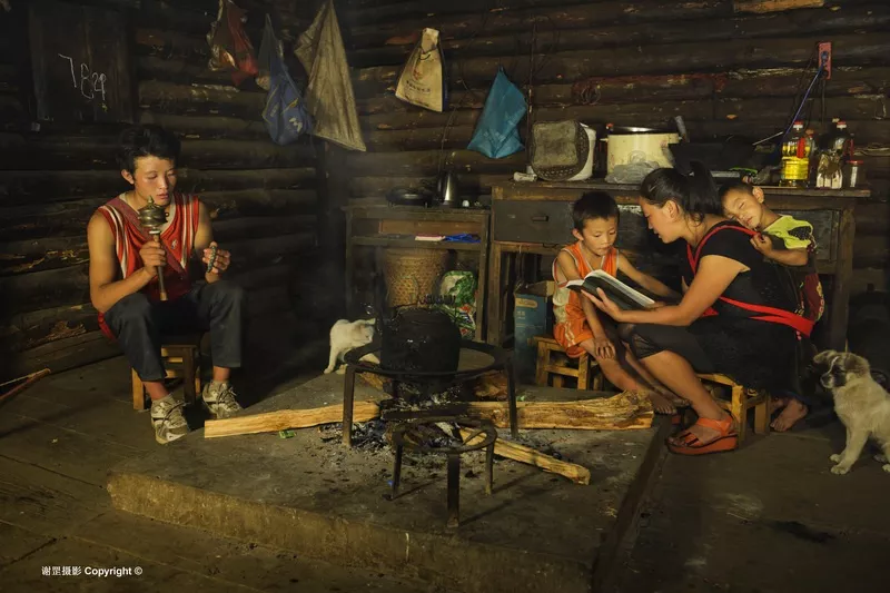 云南怒江州貢山縣丙中洛鎮(zhèn) 丙中洛居住著藏、漢、怒、傈僳等多個(gè)民族,民風(fēng)淳樸,這里的人似乎沒(méi)有民族的概念,雖然不同民族有語(yǔ)言和文化上的差異,但他們之間互相通婚,生活和睦平靜。丙中洛打拉村的金國(guó)洪一家就是不同民族和睦相處的家庭。金國(guó)洪是打拉村的怒族,妻子蔣扼是從獨(dú)龍江嫁來(lái)的獨(dú)龍族,78歲的岳母也隨女兒來(lái)到打拉村,她是保持著原始崇拜的紋面女。一家人在一起生活的十多年中從未發(fā)生過(guò)一次口角,金國(guó)洪非常孝敬老人,學(xué)會(huì)了講獨(dú)龍?jiān)挘谱鳘?dú)龍服飾,妻子和岳母也學(xué)會(huì)了怒族話,家里的三個(gè)孩子也都會(huì)講兩種語(yǔ)言。
