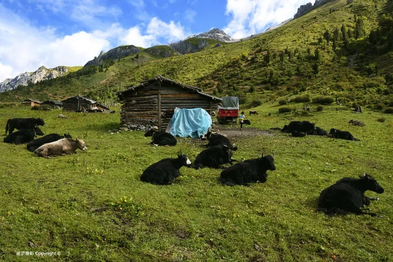 讓舍曲河谷景觀走廊-梅里雪山主峰卡瓦格博西坡 在海拔4756米的金拉山口與海拔4764米折拉山間,有一片平坦的谷地,形成了兩山夾一谷的地形。山上是高山寒漠土和風(fēng)化石構(gòu)成的蒼茫景象,而谷地更多的是草甸和溪流。這里是理想的牧場(chǎng),牦牛的數(shù)量遠(yuǎn)遠(yuǎn)比人多,僅有一戶牧民在此居住。