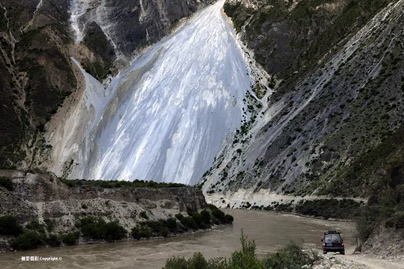 第六天:這幾天算是見識(shí)了很多,今天看到的“大流沙”才是最震撼的,穿過(guò)龍坡村,就遠(yuǎn)遠(yuǎn)可看到了一片巨大的灰白色砂石瀑布,這是丙察察線上最為著名的死亡路段。大流沙高約3500米,寬約1000米,又稱飛沙坡、滾石坡、石瀑。山體巖壁裸露,一堵巨大的滾石流,猶如瀑布一瀉而下,直插江底,驚險(xiǎn)路段不過(guò)200米長(zhǎng)。