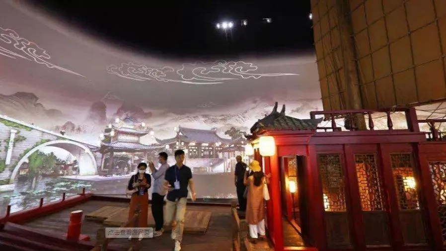 如“因運(yùn)而生——大運(yùn)河街肆印象”引入“實(shí)體”經(jīng)營(yíng)和“活態(tài)”展演模式,展廳可參觀、可體驗(yàn)、可互動(dòng)、可餐飲、可購(gòu)物,觀眾在展廳中可享受文化休閑和旅游的“一站式”服務(wù)。展廳以大運(yùn)河沿線典型城鎮(zhèn)村落為依據(jù)復(fù)原街巷建筑空間,如街道、商鋪、碼頭、米店、戲樓、民居、牌坊等,觀眾可在街巷中穿梭游覽。該展廳注重觀眾的穿越式情景體驗(yàn),運(yùn)用科技手段模擬晝夜變幻的真實(shí)場(chǎng)景氛圍,從建筑形式、裝飾元素、游戲互動(dòng)到店鋪商品均蘊(yùn)含時(shí)代特征,觀眾可在茶館喝大碗茶、聽(tīng)相聲和評(píng)書(shū)。為營(yíng)造沉浸式氛圍,展廳中隱現(xiàn)有地域方言特色的叫賣(mài)聲,觀眾可買(mǎi)到大運(yùn)河沿線的特色非遺小吃工藝品,如點(diǎn)心、醬菜、剪紙、風(fēng)箏、荷包、布鞋等,而對(duì)于一些需現(xiàn)場(chǎng)加工的特色美食,則可以通過(guò)購(gòu)買(mǎi)“交子”樣式的卡券到公眾餐廳兌換品嘗,以增加餐飲的趣味性。