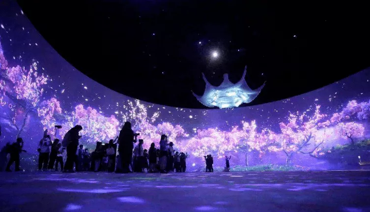 如“運(yùn)河濕地尋趣”是專為兒童打造的自然生態(tài)類體驗(yàn)展,展廳空間構(gòu)思新穎,融知識(shí)性、觀賞性、趣味性為一體,以兒童的語(yǔ)言和視角擬定外環(huán)與內(nèi)環(huán)兩個(gè)展示空間,外環(huán)展現(xiàn)運(yùn)河流域從北到南四個(gè)地理空間的典型動(dòng)植物風(fēng)貌,內(nèi)環(huán)設(shè)計(jì)為濕地生態(tài)環(huán)境的活態(tài)微縮場(chǎng)景再現(xiàn)?!按竺鞫妓O(jiān)之運(yùn)河謎蹤”是面向10—15歲青少年群體的互動(dòng)解謎體驗(yàn)展,以“二次元+古風(fēng)”的設(shè)計(jì)風(fēng)格復(fù)原運(yùn)河沿岸的衙署,設(shè)計(jì)游戲互動(dòng)、解密通關(guān),打造一個(gè)個(gè)沉浸式空間,將青少年從游戲帶入到虛擬的歷史故事中?!昂又畱佟笔菙?shù)字化沉浸式展廳,為年輕觀眾打造有創(chuàng)意、有新意的沉浸式體驗(yàn),采用“科技+藝術(shù)+文化”的手段,以運(yùn)河之上流動(dòng)變幻的水、花、船等抽象化、符號(hào)化元素,提煉出大運(yùn)河“水”“運(yùn)”“詩(shī)”“畫(huà)”的象征意義,融自然、藝術(shù)與美感于一體,讓觀眾在極具視覺(jué)沖擊力的空間中與運(yùn)河文化進(jìn)行藝術(shù)對(duì)話。