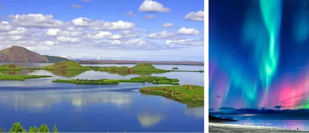 冰島是一個(gè)以其迷人的風(fēng)景而聞名的國(guó)家。冰島有十分多樣的自然景觀,可以看到水晶般的藍(lán)色冰川、瀉湖,紅色的沙灘,黑色的沙漠火山。其中最令人難忘的風(fēng)景是米湖(LakeMyvatn)——冰島北部一個(gè)壯觀的地區(qū),被認(rèn)為是冰島北極光之都。湖區(qū)是冰島第四大水域米湖(Lake Myvatn)的所在地,面積為36.5平方公里,擁有豐富的自然奇觀和野生動(dòng)物。米湖的周邊還有:美麗的熔巖堡壘Dimmuborgir和Hverfjall火山。Hverfjall火山是冰島最美麗的火山之一,有一個(gè)大約140米深,1000米寬的大型爆炸坑。它是世界上最大的爆炸隕石坑之一。