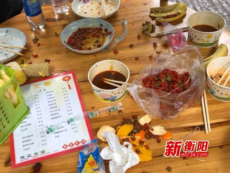 衡陽新聞網(wǎng)訊記者范一鳴報(bào)道“您好,爬到半山亭餓了嗎?這里蒸菜、炒菜、炒飯、炒粉都有的……”5月4日12時(shí)許,記者在南岳衡山景區(qū)半山亭一處美食街發(fā)現(xiàn),部分小店的餐桌上存在浪費(fèi)食物現(xiàn)象,地上還有隨意丟棄的垃圾,與景區(qū)的雅致環(huán)境格格不入。記者在一家小吃店發(fā)現(xiàn),好幾個(gè)餐桌的游客在用餐完畢后,桌上有剩飯剩菜,桌下有隨意丟棄的垃圾,礦泉水瓶、水果皮、剩菜、紙巾等。個(gè)別店主為了吸引更多顧客,來不及收
