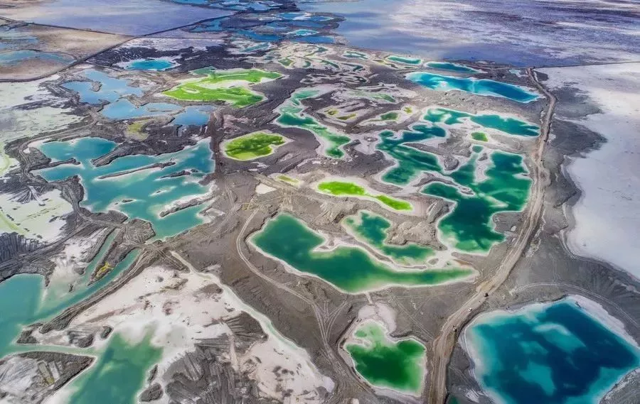 翡翠湖名為大柴旦湖,形態(tài)迥異、深淺不一的鹽池宛如一塊塊晶瑩剔透的“翡翠”。