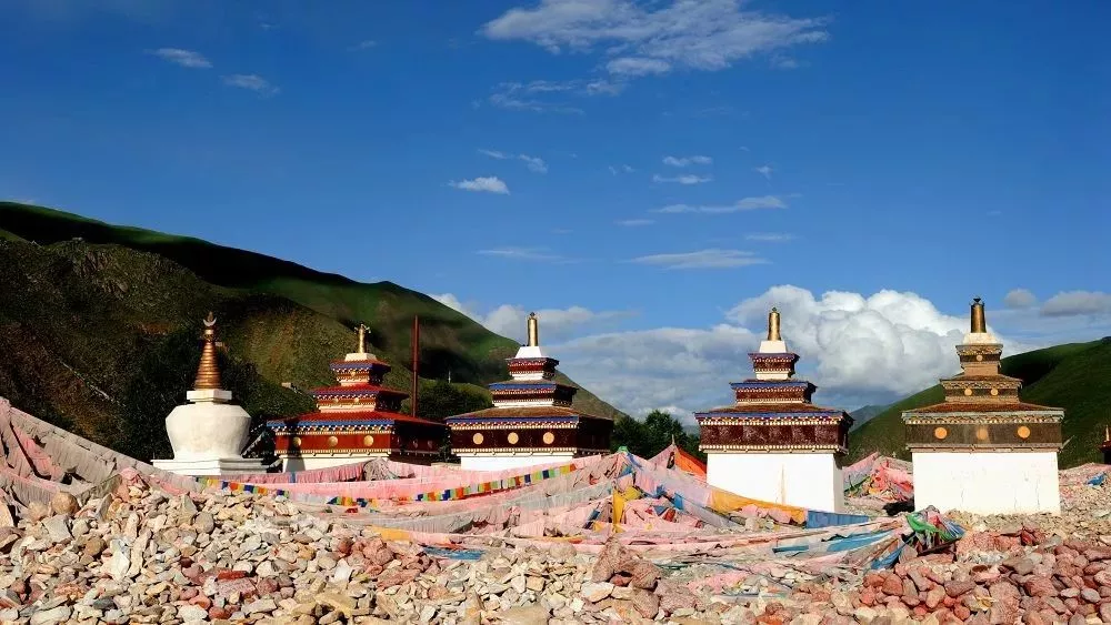 【新寨瑪尼城】是世界上最大的瑪尼堆,經(jīng)過了200年左右的時間,“眾人拾柴”已經(jīng)形成了高1.5米的嘛呢石墻圍繞著比一個足球場面積還大的嘛呢石城,城中紅色神塔威嚴聳立,莊嚴神圣。據(jù)說,這里有25億塊嘛呢石,成為藏族宗教文化的代表。
