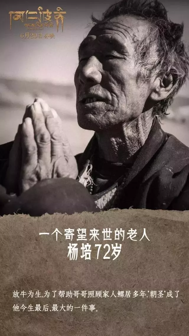 最年長(zhǎng)的楊培(72歲),為撫養(yǎng)3個(gè)侄子一生未婚,哥哥在世時(shí),兄弟倆一直想去朝圣,哥哥去世了,他害怕自己也一樣。侄子也為此下定決心朝圣,在去岡仁波齊轉(zhuǎn)山途中,圓夢(mèng)的楊培在止熱寺離世,一生算圓滿了。