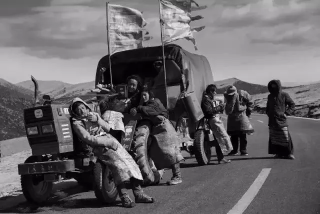 翻越米拉山時(shí),幾個(gè)年輕人的拖拉機(jī)被一臺(tái)越野車撞壞,越野車道歉了說(shuō)車中有人昏迷,要先走。生命可貴,他們便讓司機(jī)注意安全。幾個(gè)年輕人不懂維修,想著離拉薩只有100多公里了,就把車頭卸下,唱著歌,拖著一噸重的車邊走磕長(zhǎng)頭。