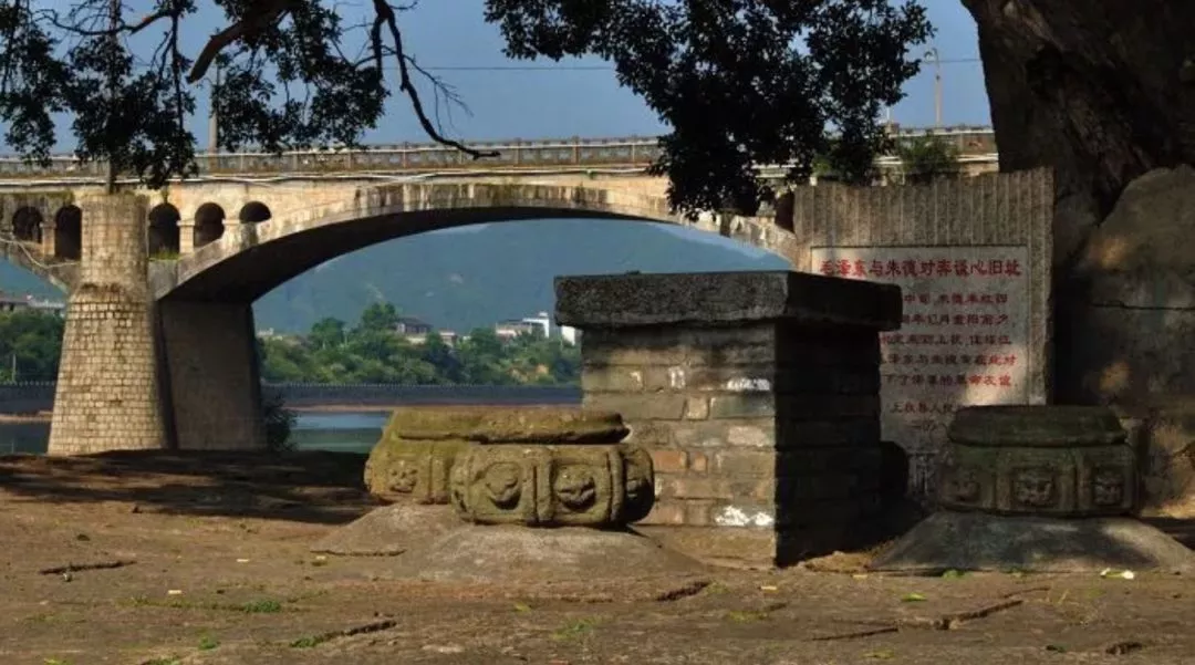 臨江樓門前有一古城門“陽明門”是為紀(jì)念明代著名哲學(xué)家王陽明在上杭架設(shè)浮橋的功績(jī)而得名。門前碼頭大榕樹枝繁葉茂,郁郁蔥蔥。當(dāng)年與朱德在這里促膝長(zhǎng)談,指點(diǎn)江山,偶爾還擺上象棋對(duì)弈一番。至今榕樹下還保留著當(dāng)年的石桌、石凳、見證了兩位偉人深厚的革命友誼。