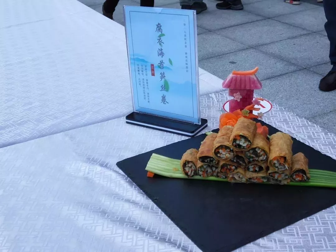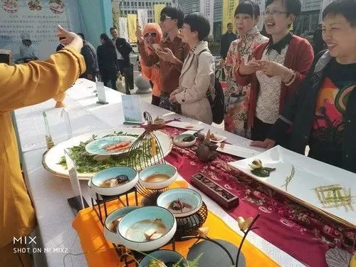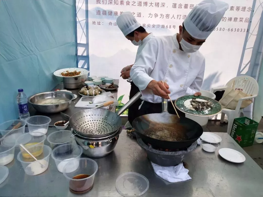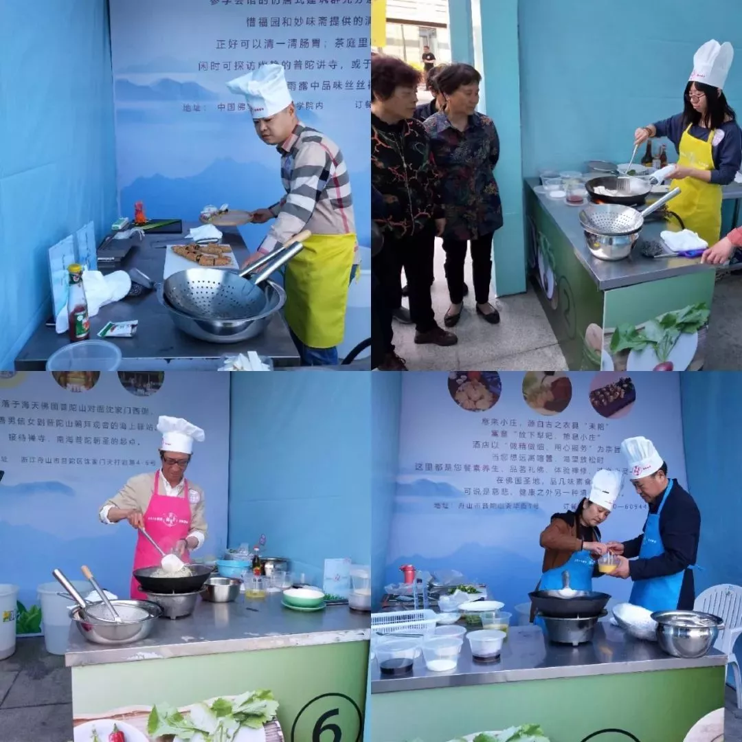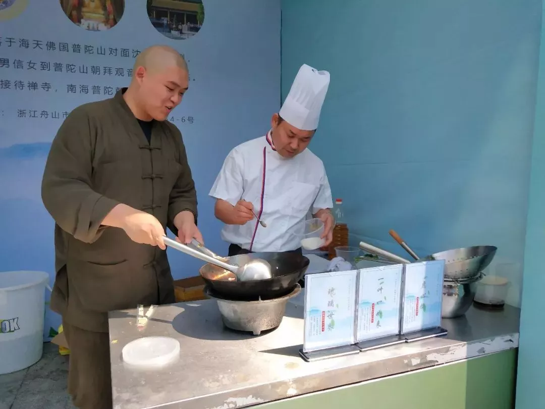 上午,活動(dòng)主辦方還邀請(qǐng)了中國(guó)佛學(xué)院普陀山學(xué)院參學(xué)會(huì)館的大廚為觀眾現(xiàn)場(chǎng)展示自家拿手素食烹飪手藝。