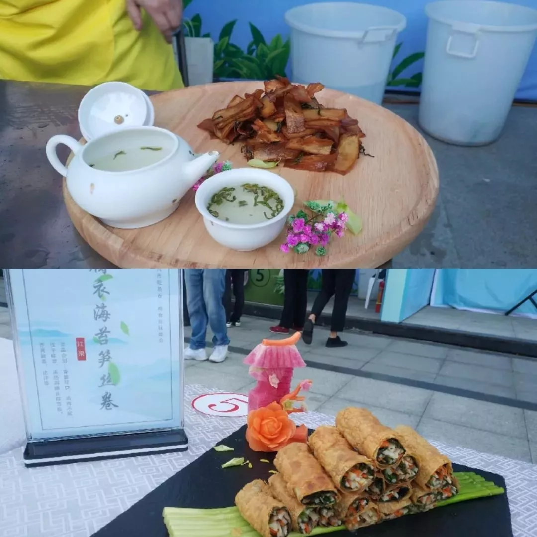 最終5號(hào)選手憑借《腐衣海苔筍絲卷》、《茶香杏鮑菇》兩道色香味俱全的菜品摘得大眾組比賽金獎(jiǎng)。