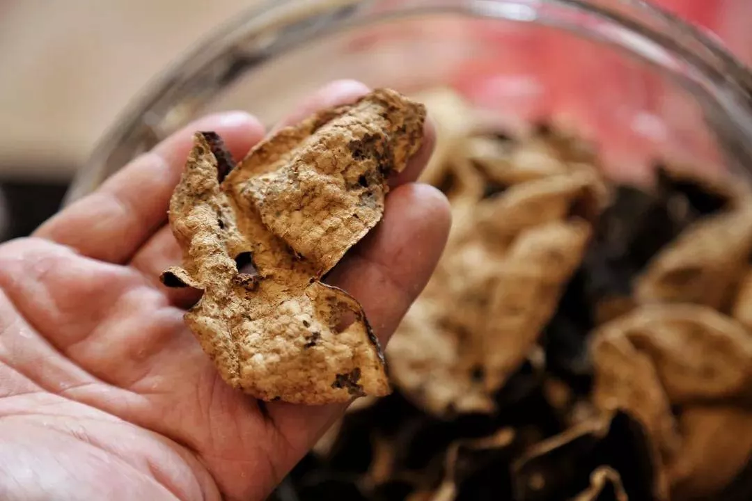 天馬產(chǎn)區(qū)歷史悠久,早在改革開(kāi)放前就是陳皮的主要高品質(zhì)主產(chǎn)區(qū),所以存世的老陳皮中真正的三四十年以上也多數(shù)為天馬產(chǎn)區(qū)為主,這更是得益于小鳥(niǎo)天堂的存在。他們幾代人堅(jiān)持下來(lái)的天然仿野生種植,純手工剝皮,晾曬,是市場(chǎng)少有的高品質(zhì)天然陳皮。而正宗天馬皮的特色,就是其表皮油室分布均勻,凹凸感明顯,紋理清晰,表皮有光澤,有油潤(rùn)感,氣味芳香清新而帶有陳香藥香味,而泡水茶色通透自然。