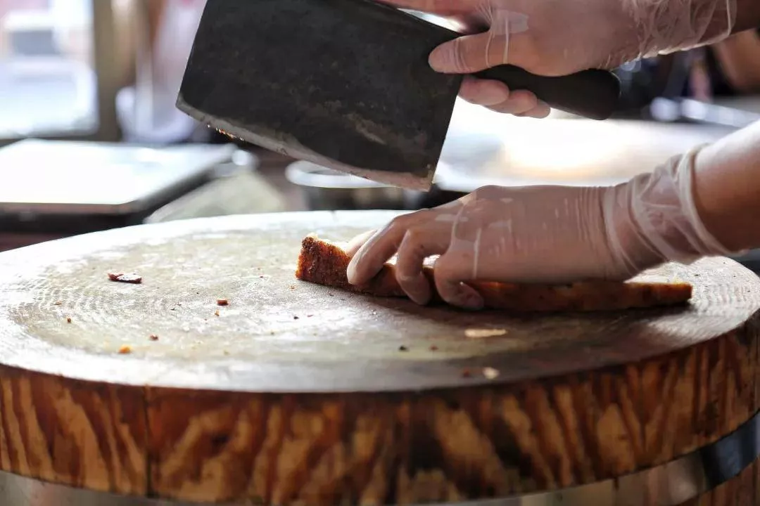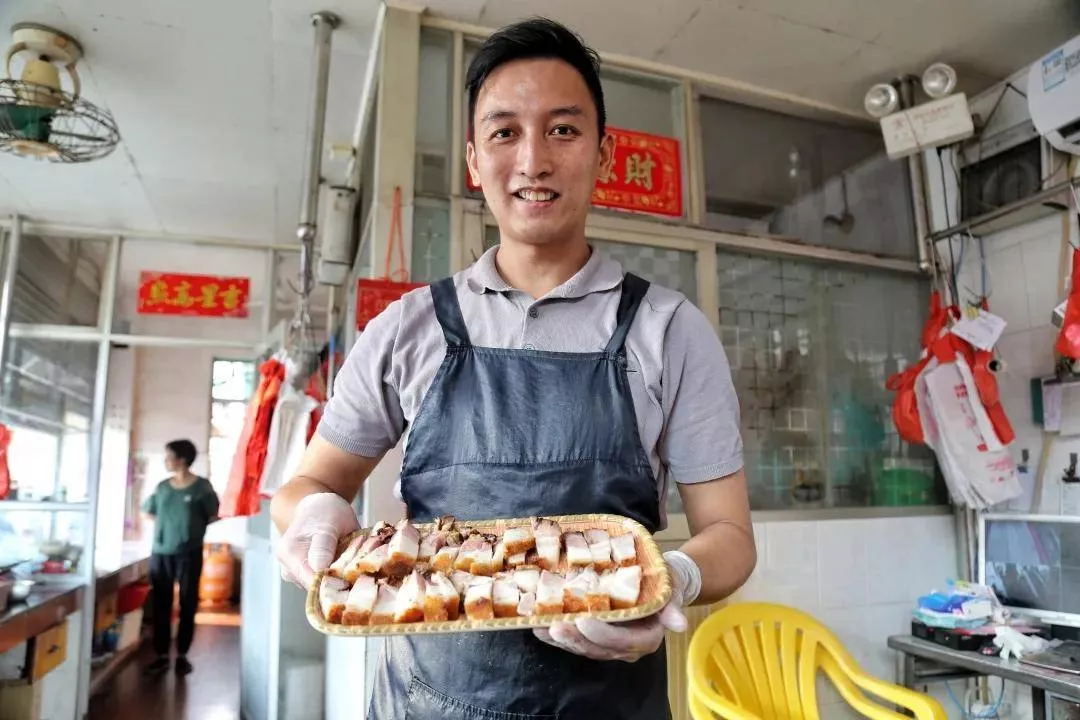 想不到吧?你以為砍燒臘的都是油膩大叔,殊不知卻來(lái)了一位俊俏的鮮肉小哥哥,他是來(lái)記的少東家哦,刀法一流,盡得老爹真?zhèn)鳌?/p>
