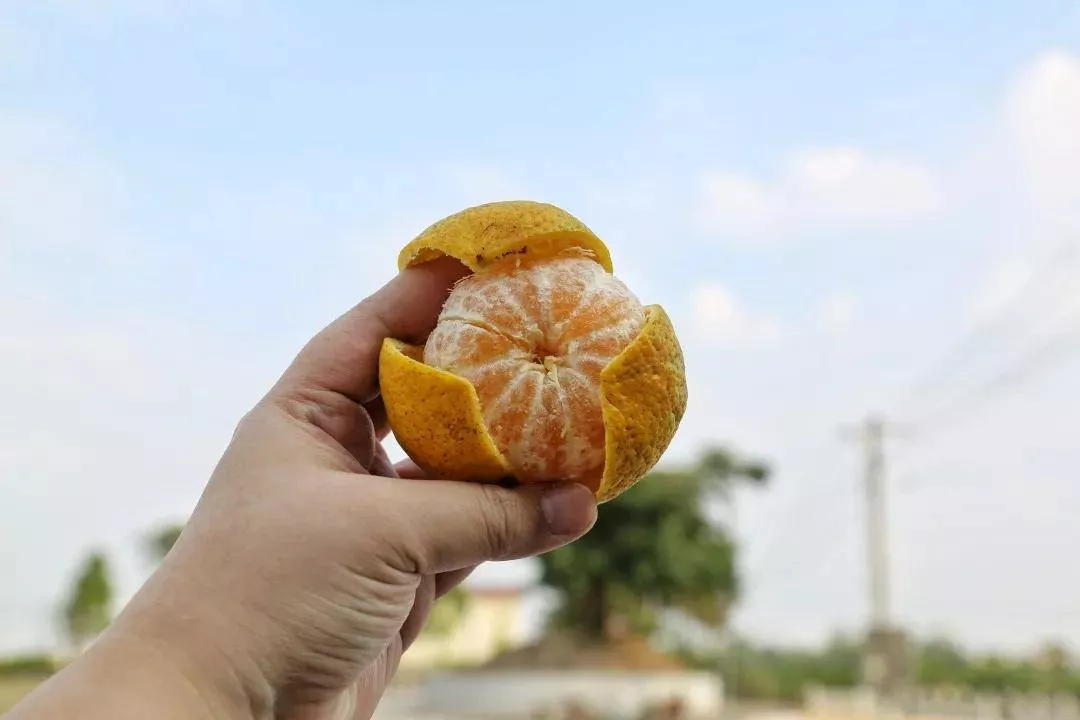 路上碰巧遇到一位阿姨在剝新會(huì)柑,以柑頂為圓心,小刀麻利地劃三下,均勻等分的果皮應(yīng)聲而開(kāi),分離出來(lái)的果肉被細(xì)致裝好,阿姨說(shuō),她們一般不吃這些果肉而只要果皮的,向阿姨討了兩個(gè)柑果肉,入口清甜無(wú)渣,帶點(diǎn)微酸,在秋季很是能降秋燥。