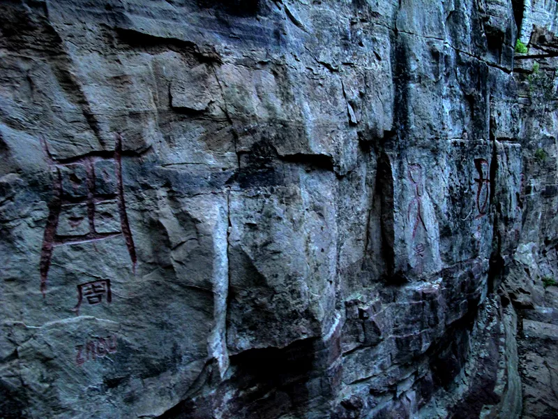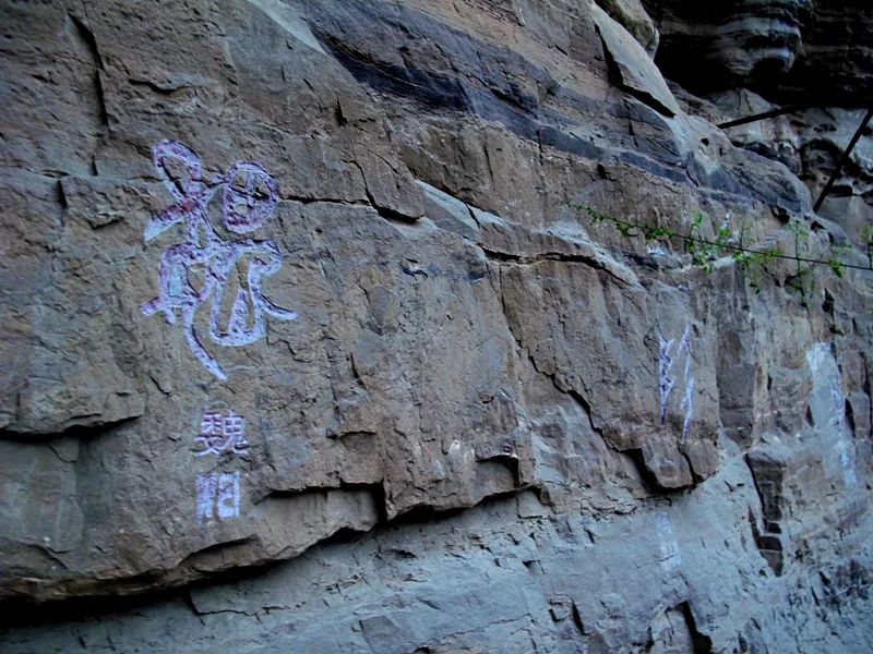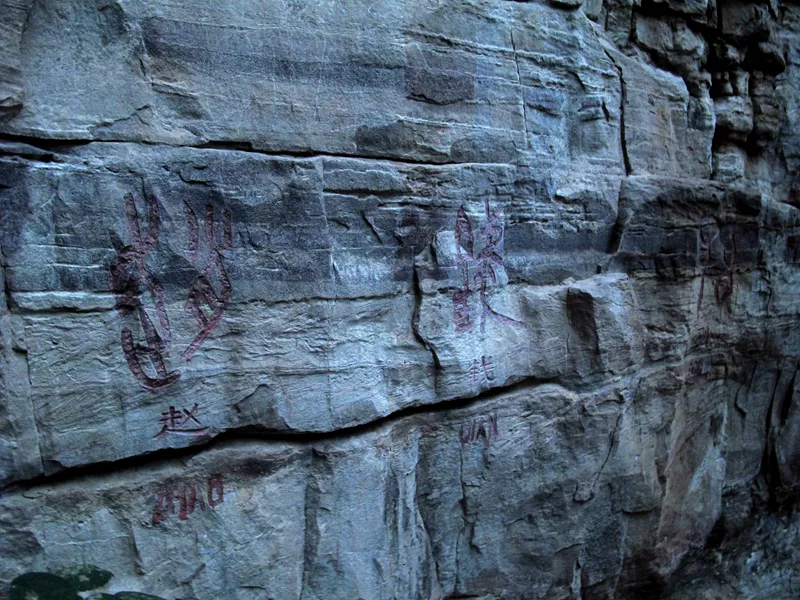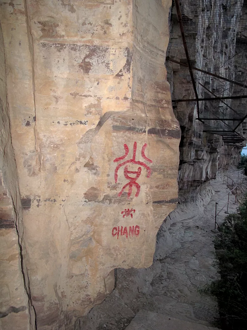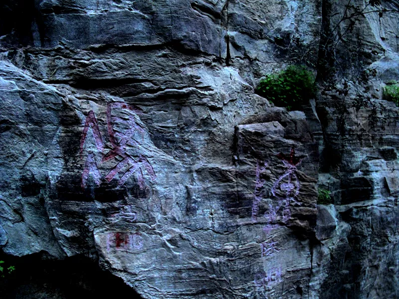 仙臺山上怪石嶙峋煞是好看,巖壁上還有許多的摩崖石刻,上面刻的是甲骨文十二生肖和百家姓,讓人看了產生親切感。因為在這些摩崖石刻里我看到了我的姓氏,似有回家之感。同時看著這些讓你穿越時空的文字,也會讓你走進“憑石問古”的獨特意境。