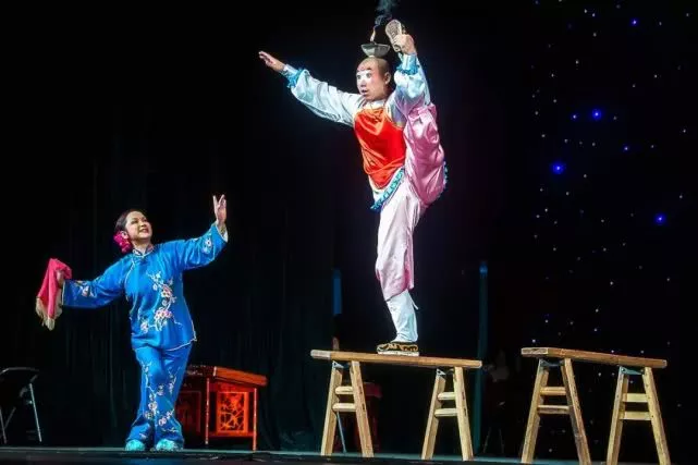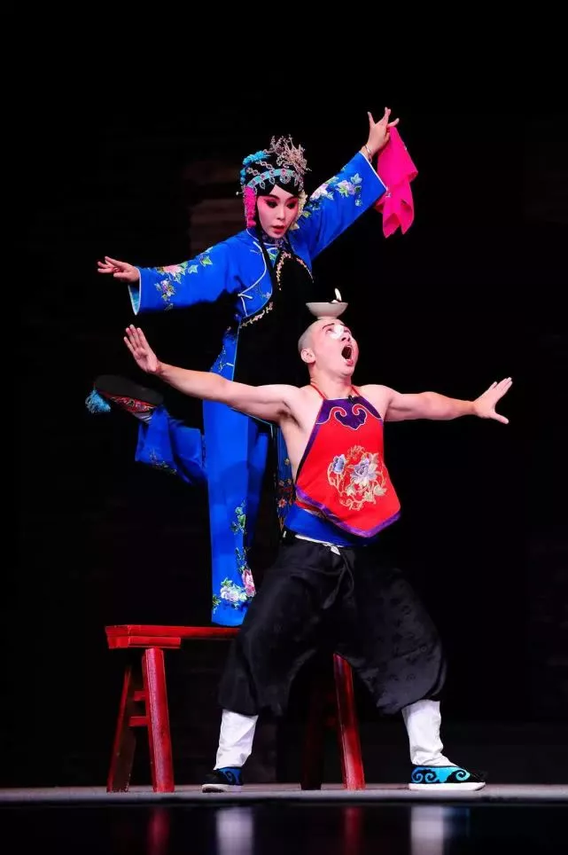 《皮金滾燈》講述了這樣一個(gè)故事:書生皮金迷戀賭博,其妻怒其不爭(zhēng),訓(xùn)練出"滾燈"這一技巧。怕老婆的皮金,受罰頂著燈碗,完成一組組高難驚險(xiǎn)的動(dòng)作,如:翻跟斗、從板凳下鉆過(guò)等。怎么折騰燈碗也掉不下來(lái),碗里的燈火也不會(huì)熄滅。相當(dāng)考究頭頂功夫。