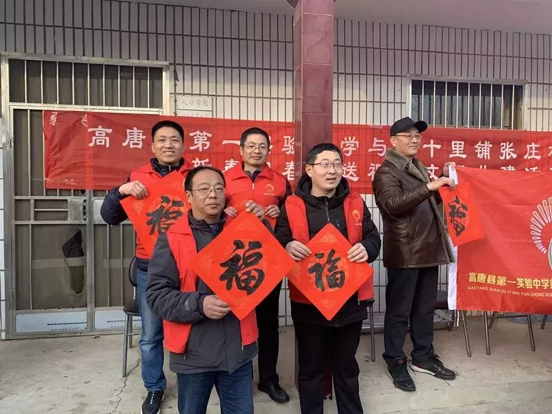 春節(jié)是中國最盛大、最重要的傳統(tǒng)節(jié)日,貼春聯(lián)的習(xí)俗一直延續(xù)至今?!盁o聯(lián)不成春,有聯(lián)春更濃”,在新春佳節(jié)來臨之際,為豐富村民的文化生活,營造喜慶溫馨的節(jié)日氛圍,1月11日,高唐縣第一實(shí)驗(yàn)中學(xué)與共建單位三十里鋪張莊村聯(lián)合開展“迎新春寫春聯(lián)送祝福文明共建”活動(dòng),將一副副飄著墨香、寓意文明健康、祝福喜慶的春聯(lián)展送到村民手中,讓村民感受到了濃濃的年味。1月11日下午,教師志愿者冒著嚴(yán)寒來到三十里鋪張莊