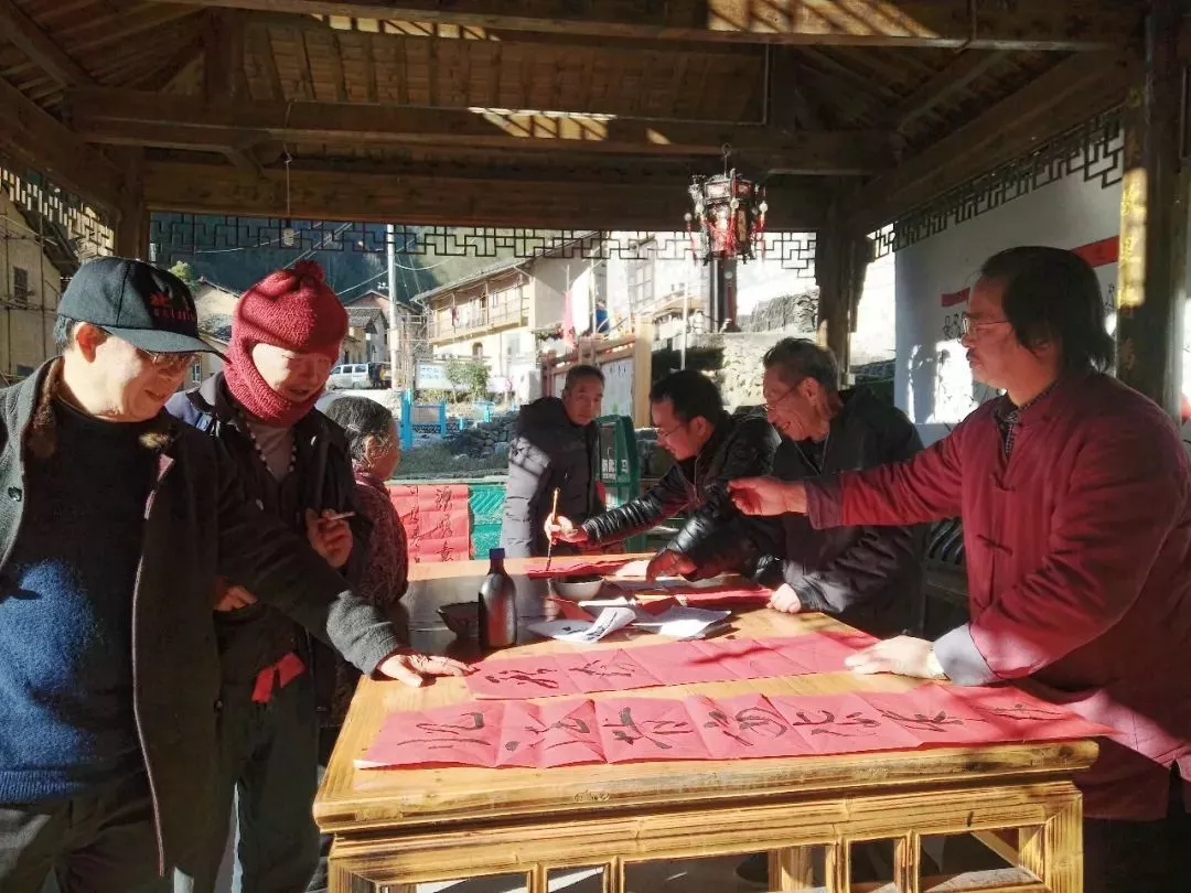“憶往昔安岱歲月,看今朝老區(qū)振興”“根據(jù)地灶臺(tái)紅火,安岱后農(nóng)家致富”“安岱后山青水秀,百姓家日子火紅”這是洪關(guān)旺等松陽史志人用心走心為革命老區(qū)安岱后人民創(chuàng)作的部分春聯(lián)。寫對(duì)聯(lián)活動(dòng)從1月23日上午10:00一直持續(xù)到下午4:00,共創(chuàng)作書寫了120余對(duì)對(duì)聯(lián),村民們都很喜歡這些具有本土特色的春聯(lián),希望史志辦的同志來年還能到安岱后為他們寫上幾對(duì)特色春聯(lián)。史志工作者不僅寫春聯(lián)用心走心,老區(qū)安岱后的其他