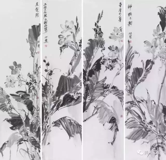花鳥四條屏蕉艷圖 136cm×34cm×4