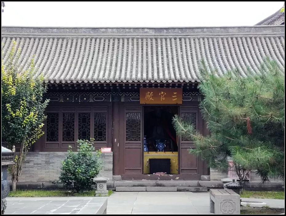 三官殿供上元天官(聯(lián)云:天官地官水官只在心官不昩,求福賜福護福務須積福為先),中元地官(聯(lián)云:瑞草齊開日,際地官之考釋;桂花將綻月,當少昊之司權。)下元水官(聯(lián)云:鋪天地、掌機衡,赫赫因被六合;握乾坤、司坎離,昭昭應九霄。)