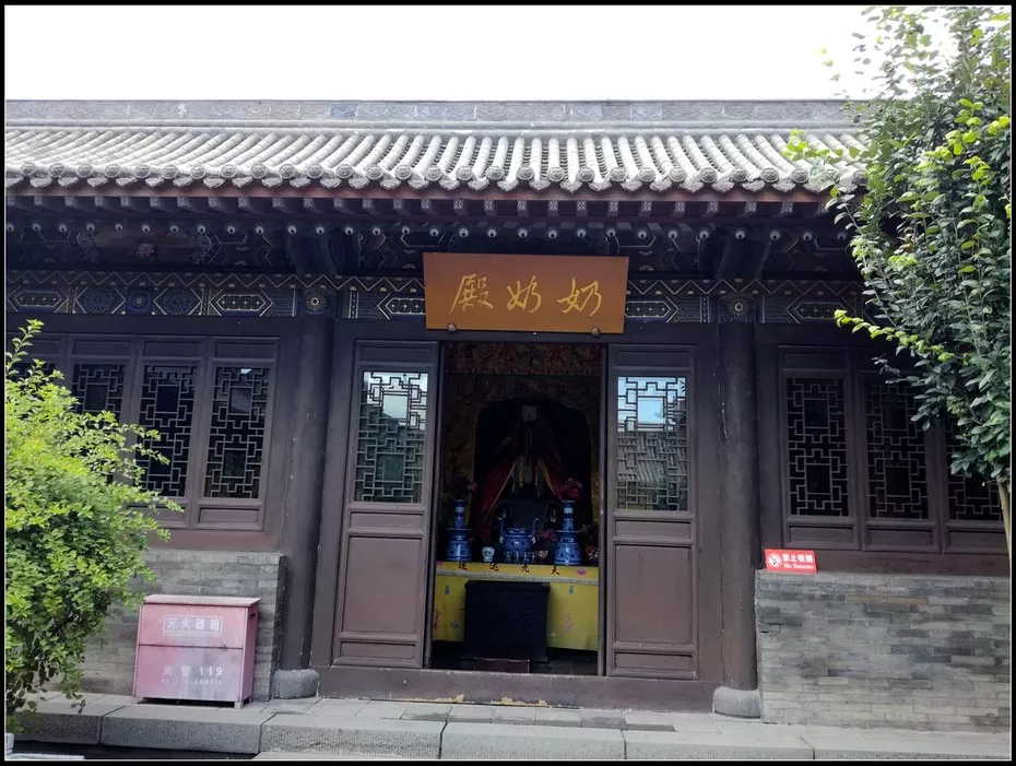 奶奶殿。供五個奶奶,中間為碧霞元君,兩邊送子娘娘、痘疹娘娘、眼光娘娘和催生娘娘。